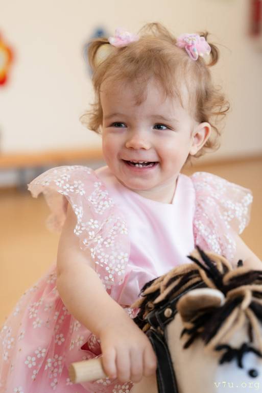 Вероника очень активная, хотя немного неловкая. Все лето педагоги пристально следили за ней, с одной стороны, опасаясь, что маленькая девочка может упасть и травмироваться, с другой стороны, с гордостью, так как ребенок стал более скоординированным и подвижным. Более того, Вероника даже научилась кататься на самокате. Еще один, даже более важный приобретенный в детском доме навык – хорошая речь. Ранее вообще трудно было понять, что она говорит. Также малышка любит петь песни и танцевать.