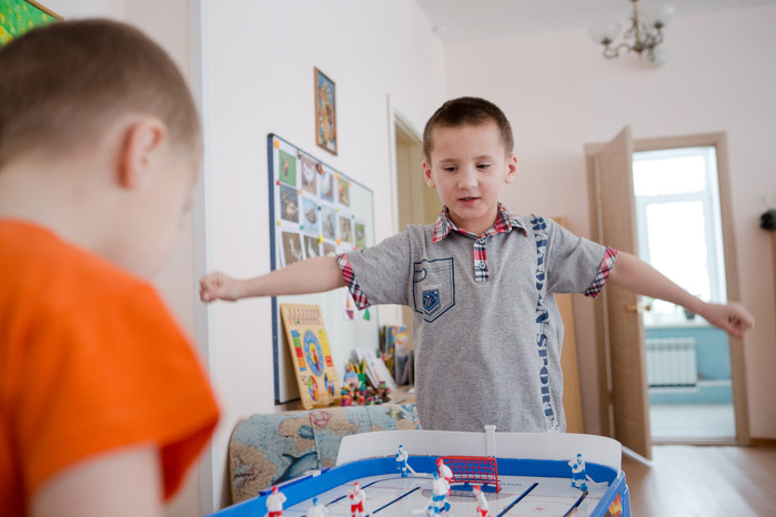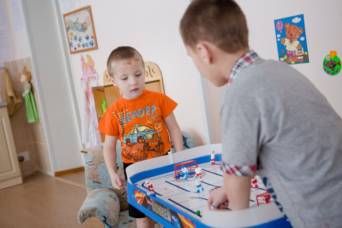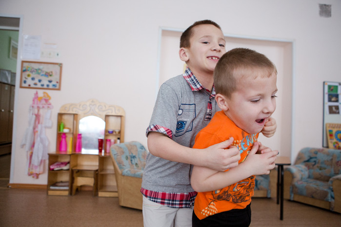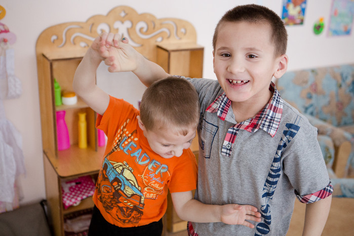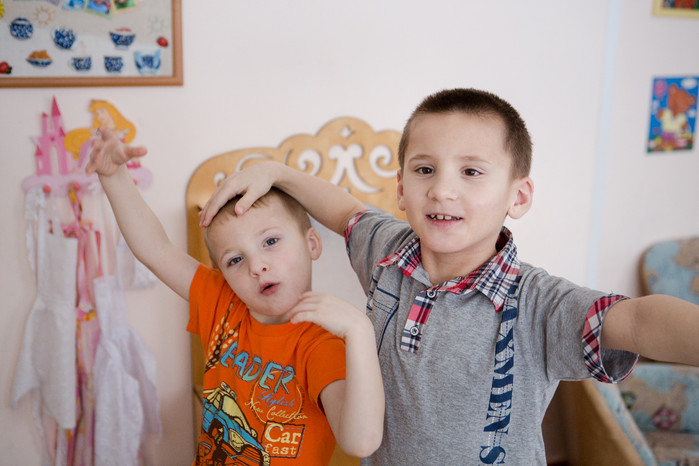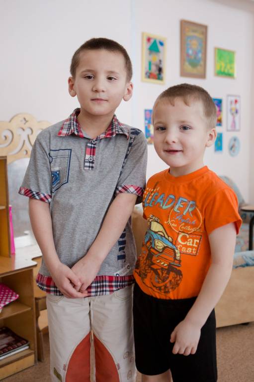 Между тем, ребята очень хотят семейного тепла и любви. Недавно из детского дома уезжал мальчик Саша. По традиции он лично прощался с каждым ребенком из группы. В это время Руслану только что сделали массаж, и мальчишечка лежал завернутым в теплое одеяло. Саша подошел к его кровати. У Руслана повлажнели глаза, и, несмотря на свой коммуникабельный характер, просто даже не смог ничего сказать. Он вообще нежный ребенок. Как младший, Руслан имеет хоть какой-то тыл. О брате заботится Николай. Они ладят друг с другом и предпочитают играть вместе, потому что находят полное взаимопонимание. А вот Коле на кого опереться? Физически он развит сообразно возрасту, но что у ребенка в душе? Ведь мальчишка брал ответственность за выживание их обоих. Николай и в группе детского дома – самый старший. Он очень помогает воспитателям, если нужно что-то прибрать или помочь младшим заправить кровать. Коля старается учиться: после школы даже просит сам написать ему цифры или буквы, а потом очень аккуратно их выводит. Воспитатели делают прогноз, что у него будет хороший почерк. А еще у мальчика крепкая память: одним из первых он запоминает стихи и песни. Руслан очень переживал первые дни, когда Николай поступил в школу, ждал его возвращения, видимо, боялся, что потеряет и брата.
