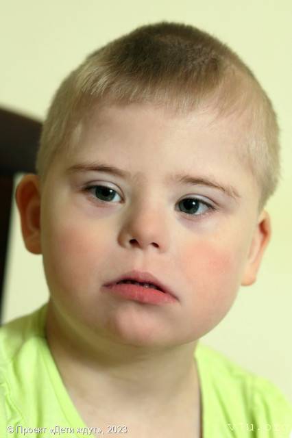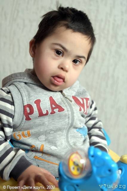 Константин — спокойный, очаровательный, милый «солнечный» мальчик. Несмотря на то, что он отстает в развитии, он любит играть и общаться с детьми, с интересом рассматривает яркие игрушки, уверенно держит их в руках. Костя очень любознательный, всегда стремится узнать что-то новое. Мальчик научился самостоятельно кушать. Как и всем детям его возраста Костику нравится внимание взрослых. Он любит, когда его держат на ручках, показывают разные предметы, которые издают звуки, особенно нравится играть с ключами. Самостоятельно Костя еще не ходит, только за руку со взрослыми, но иногда несколько шагов может сделать сам. Костя не говорит, но обращенную речь понимает, выделяет «своих» воспитателей среди всего персонала. Мальчик всегда в хорошем настроение, он подвижный, общительный, заряжает всех своей положительной энергией. Костик любит играть в шумовые игрушки – погремушки, пирамидку, ловко вращает всякие тарелочки и кольца, занимается с фитболом. На прогулках зимой мальчику очень нравится кататься на санках.