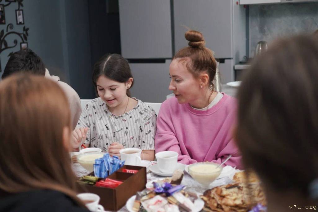 Любимое блюдо Амины — блины, их и решили готовить вместе с другими воспитанниками центра для детей-сирот. Все вместе под руководством Юлии напекли целую стопку ароматных блинчиков и устроили чаепитие.