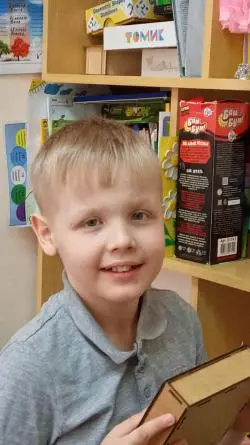 шалун и непоседа, у него много друзей. Мальчик обожает машины на пульте управления, с удовольствием конструирует и собирает пазлы.