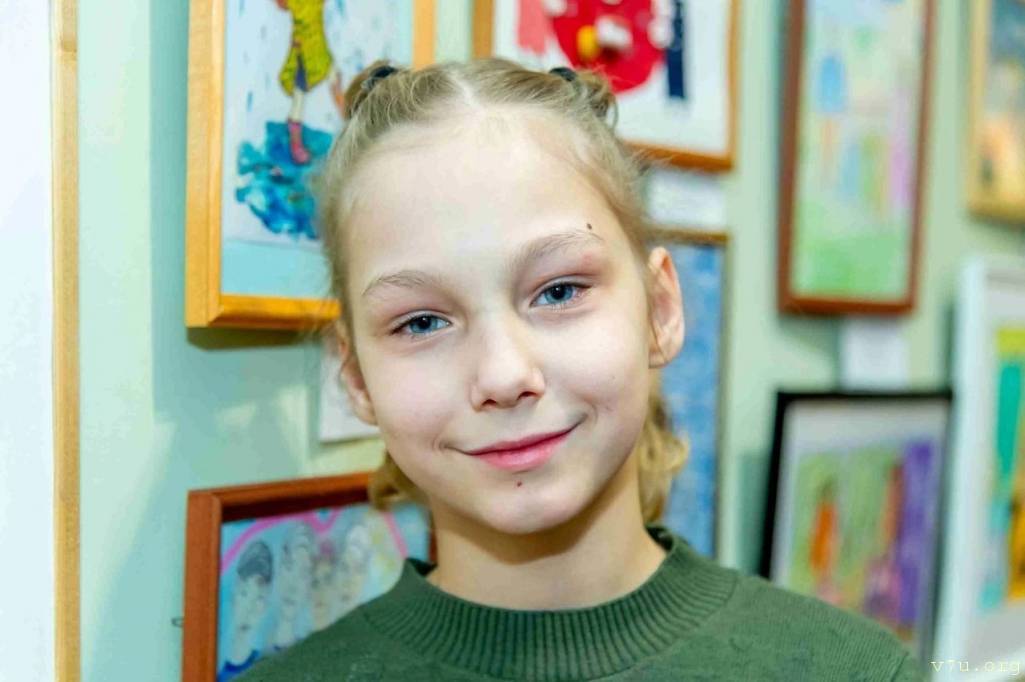 Алёна на выставке со своей работой. Как мне внешне нравится эта девчонка! Милая очень, приятная, как из сказки