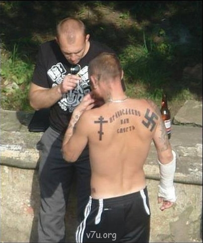 Тундра, это как раз пример радикальных православных. Википедия - «Православие или смерть!» (греч. Ορθοδοξία ή θάνατος!) — лозунг, популярный среди радикальных групп в Православной Церкви. В Российской Федерации признан экстремистским и включён в Федеральный список экстремистских материалов под номером 865 по решению Черёмушкинского районного суда города Москвы. Хотя на самом деле эта надпись трактуется совсем в другом значении. То есть имеется в виду не "жизнь или кошелёк", а то что в православии обретается бессмертие души, вне его душа умирает. Ну а фото приведённое выше, это, что то типа гибрида между скинами и радикалами. Это тоже беда нашего общества, ведь в такие группировки идут энергичные, патриотичные мальчишки, которые реально хотят что нибудь сделать для страны. Вот тут их и подлавливают умные продвинутые "дяди", вовлекая во всякую мерзость. Нас уже и так разодрали дальше некуда, каждый сам за себя, каждый отстаивает свои права. Медики, педагоги, приёмные родители, не приёмные, многодетные, пенсионеры, христиане, мусульмане, язычники... на какой дудочке только не готовы играть лишь бы мы только сплясали, а мы? Мы пляшем и идём завороженно и кусаем друг друга! А долго ли ещё идти?Тундра:Да, такого я ещё не видел.