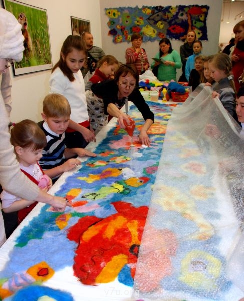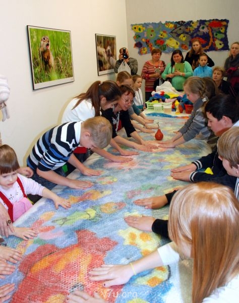 Были в прошлые выходные в Центральном доме художников на фестивале "Первозданная Россия". Правда, половины из заявленного по программе, к сожалению, не было. Был мастер-класс для детей по валянию шерсти и оригами-аппликации (ждали керамику, но так и не дождались), очень хорошая фотовыставка дикой природы (пейзажи и животные), просмотр мультфильмов и документального кино о природе (формат - для умненьких, думающих деток), мастер-класс ведущих фотографов, лекции о съемке затонувших кораблей и еще о чем-то (ребятенок не дал послушать). Единственное, пожалуй, что ему безумно понравилось, - это музей музыкальных инструментов, где можно было на всем поиграть - от простейших колотушек и трещоток до мандолин и валторн, там мы и провели большую часть времени... Ни выступления фольклорных коллективов, ни конкурсов для детей, увы, не было... Зато были очень симпатичные сувениры - печатные пряники, всякие безделушки из меха - очень интересные...