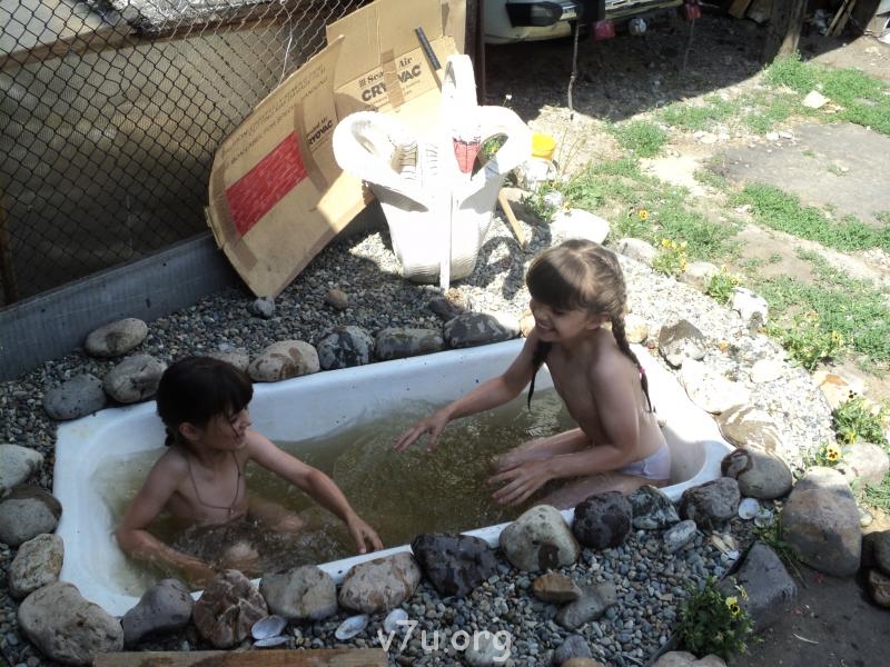 Марина,посмотрела твои творения. Красиво!!! Плетень не умею плести,очень нравится,надо попробовать,смотрится замечательно.А камушки! Кругленькие, мечта. У нас только гранит и ещё какие-то из под земли на полях выходят.А девчонки какие довольные,плещутся!!!Прудик им явно по вкусу! Жаль,что у нас это не совместишь. Пока. Боимся,что плёнка в пруду лопнет и начнёт течь. Хотя от детей предложения поступали нырнуть в жаркий день.