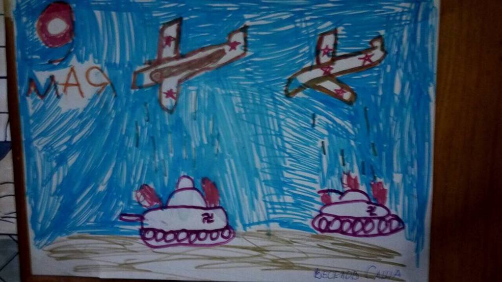 А вот какие замечательные рисунки Саша нарисовал к 9 Мая.