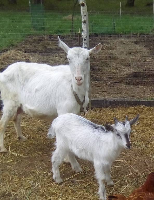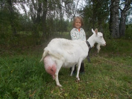 Мамка Зааненская коза(4 роды ,двойня).Удой 5,5л на траве.Зимой 3л.Зато очень стабильные удои.Я её через год крою.И она 1,5 года доиться.Что очень удобно.Очень ласковая и нежная.И свои качества передаёт потомству.Родила девочку и мальчика.Девочку себе оставляем.