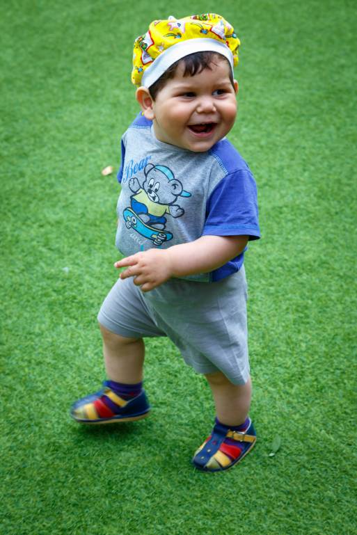 У годовалого Рамиля день рождения в апреле. Весенний мальчик и по характеру яркий и солнечный. Он доброжелательный и контактный, но с правильными реакциями на незнакомых людей. Поэтому в начале фотосессии маленький Рамиль был слегка насторожен. А когда понял, что ему не грозит никакой опасности, заулыбался и начал бегать.