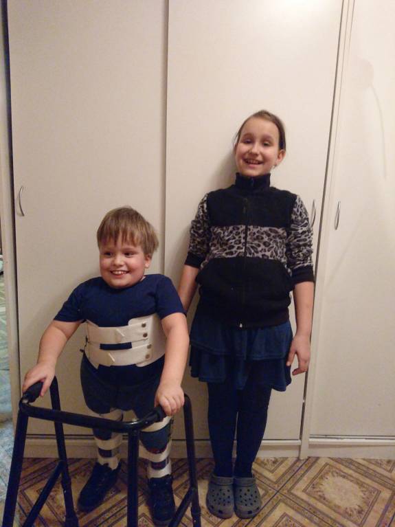 Ходим. Сегодня елку у девочек украшал стоя. В футбол с мальчишками играть начинает ( с ходунками). Но рост с весом не вяжется. 7 лет, рост 105, вес 30. Доча. 8 лет, рост 135, вес 38.