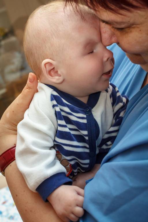 За это время Саша заметно подрос, и нам с Валерий Касаткин подумалось, что надо сделать новые фотографии мальчика. Но ребенок так нежно затих на руках у няни, так доверчиво стал припадать к ней носиком и лбом, что плакали даже сотрудники детского учреждения, которые на своем веку видело разное.