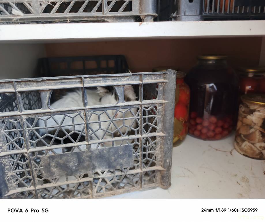 Как только приближаемся к ней - она сразу за сервант. Ее оттуда не вытащить.