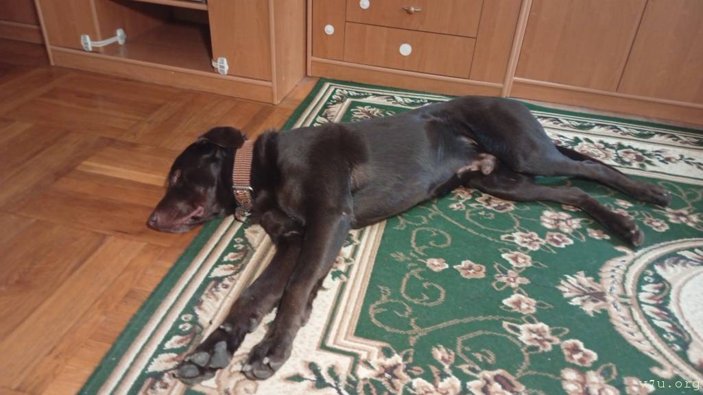 И гость на передержке. Хозяин утверждал, что лабрадор, но он размером с дога. Радует, что на три дня, из которых полтора прожито относительно без потерь, ну и песель воспитанный, ничего не разбил, не погрыз, никого не съел из котопесов. Кошь его пугает своей харизмой( надутой харей и хвостом елочкой), собака просто делает страшную улыбочку и гоняет от меня , чтобы не слишком часто проявляла чувства...