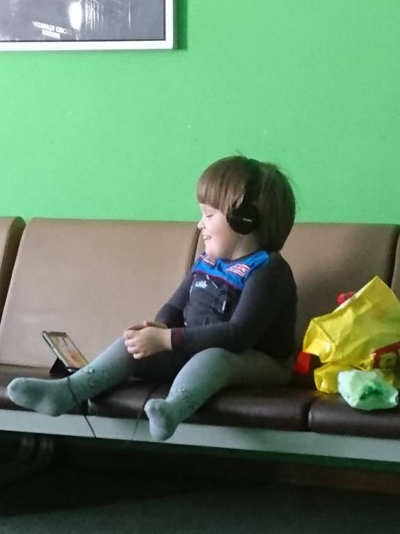 По виду тоже кажется, что подрос. А по сантиметрам вроде нет. Сейчас аппарат будем примерять, попросим и рост измерить. У них на стене линейка.