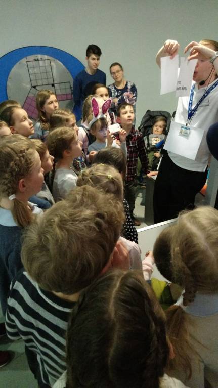 А это вчера с Олиным классом в планетарий ездили. День Космонавтики отмечали. Мамо сфотографировать не догадалась.