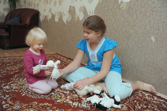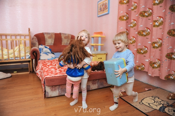 У нее действительно дом в коттеджном поселке «Бобры». Просторный дом, но это, пожалуй, единственное его достоинство. Ни колонн, ни фонтанов, ни лестниц из красного дерева. Очень скромный ремонт внутри (местами недоделанный). «Как и в любом доме, где много маленьких детей, любая горизонтальная поверхность является гардеробом», - смеется Анастасия Ленивцева, открывая нам дверь. Присутствие детей действительно ощущается везде и всюду: три детских стульчика у стола, баночки для детского питания, по полу раскиданы игрушки, под лестницей целый автопарк игрушечных машин. Сами дети – тут же. Пока мы разговариваем, двое старших, родных, приглядывают за приемными тройняшками. Видимо, когда детей в семье больше, чем трое, они как-то самоорганизуются.
