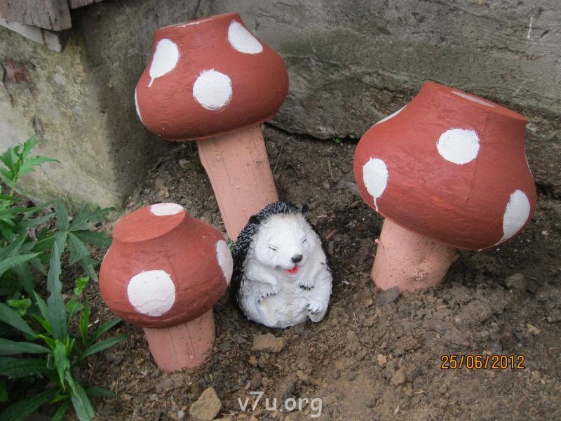 А мы с сыном вот насмотрелись темки"Украшения участка" и теперь пробуем сами на своем. Помаленьку потихоньку,вот грибочки сделали,а теперь жирафа делаем.Непередаваемые очучения!