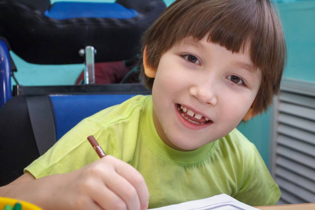 Ангелина говорит короткие слова. Она очень любит рисовать. По мере своих сил прибирает рабочее место.