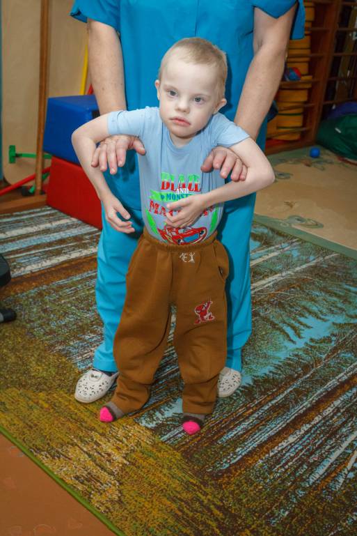 Как рассказывает инструктор по ЛФК Центра помощи детям с особенностями развития, куда Слава был переведен полтора года назад, Слава ходит только с помощью взрослого.