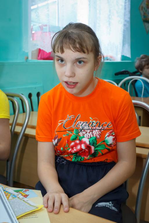 Дашеньку любят в детском центре и воспитатели, и дети. Коммуникабельная девушка хорошо общается, она доброжелательна, легко идет на контакт. Имея проблемы, связанные с ДЦП, Даша хоть и с прихрамыванием, но передвигается самостоятельно. Сама ест и не пользуется памперсами.