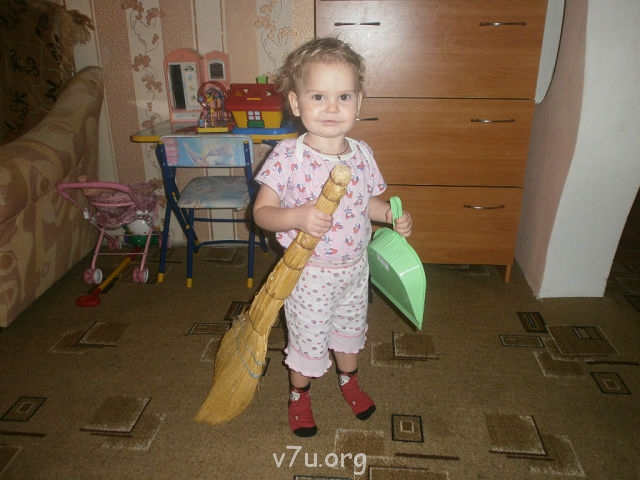 Да, хозяюшка,сегодня наливаю Вике ведро воды, даю тряпку, и моет полы...У меня покой на 30 минут пока моет, я делами занимаюсь...