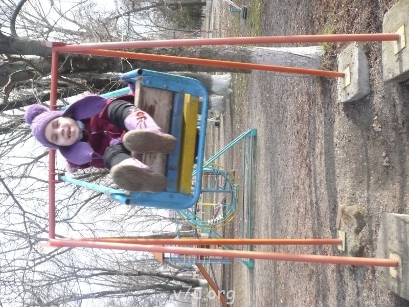 Ходили сегодня на детскую площадку, радости не было предела. Наталья совершенно не боится качаться на качелях, раскачивается очень сильно. А вот Женька сразу кричит "боюся-боюся" Пришлось папе вспомнить молодость и качаться вместе с сыном. Тогда Жене уже и не страшно,хоть сильно,хоть не сильно. Набегались ,напрыгались. Вообщем хорошо погуляли. Женя вообще не стеснительный ребенок, может к любому подойти, познакомиться. Наталья совсем другое дело, эта бука. Слова не вытянешь, сразу надувается и все. Спрашиваю, Ты стесняешься? или боишься? Отвечает, что не хочет ни с кем дружить и все. Может пройдет со временем, а может просто характер такой. У нее пол группы девочек ходят на танцевальный, ну и она давай проситься. Пошли. В результате разоралась, распсиховалась но танцевать так и не пошла. Девочки смотрели на нее с ужасом, одна подошла, так она ее толкнула.