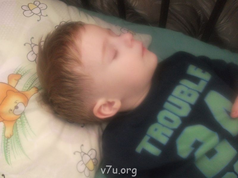 сзади оставлена длининькая косичка, фоткала во сне т.к. не любим мы это дело.