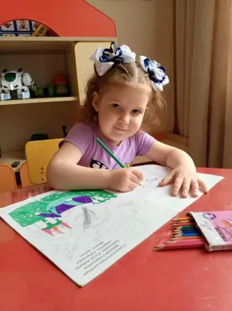 Характер: Девочка по характеру улыбчивая, доброжелательная, отзывчивая. Ребенок отзывчив на похвалу, любит одобрение. Уровень развития соответствует возрастной норме. К занятиям проявляет интерес. Познавательная активность на занятиях носит кратковременный характер. Культурно-гигиенические навыки и навыки самообслуживания сформированы. Следит за своим внешним видом. На педагогические замечания реагирует адекватно, к взрослым относится уважительно, к советам и рекомендациям прислушивается. Любит рисовать и раскрашивать различные раскраски.