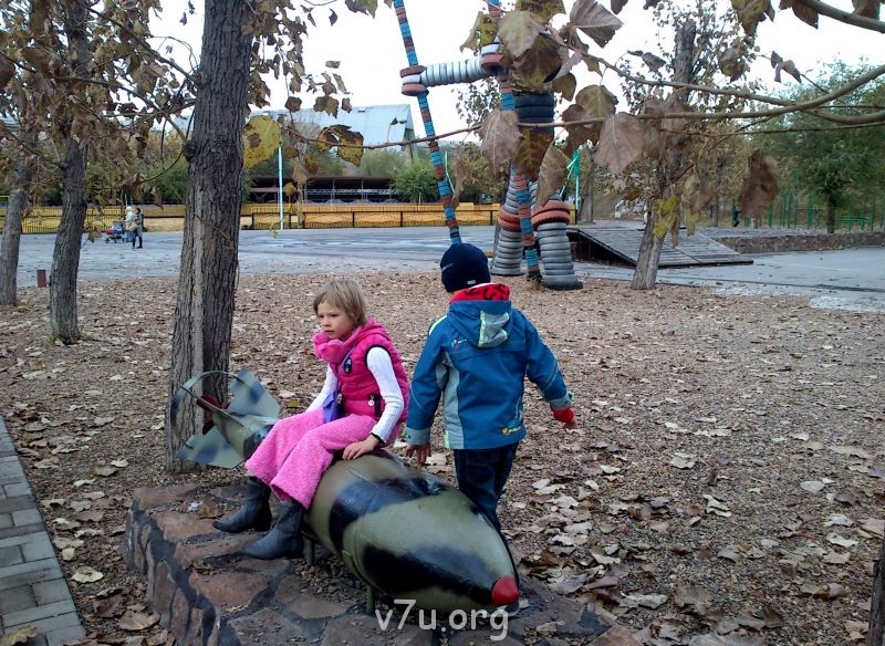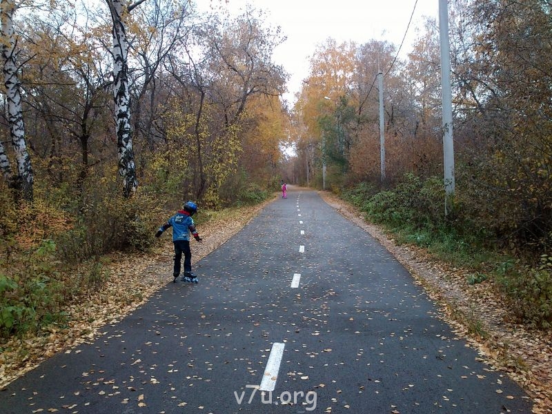 Аленка катается лучше Димки, тот валится, как кулек. Защита спасает, а то давно ободрался бы весь. Аленка орет хлеще Димки. "Где у тебя громкость регулируется?" - спрашиваю. Удивляется: "Нигде..." - "Тогда сама регулируй. Вот сейчас тише, еще тише. Вот так пойдет..." Народ мне попался шабутной и крикливый... А я новые краски купил... Не дадут ведь покрасить, черти...