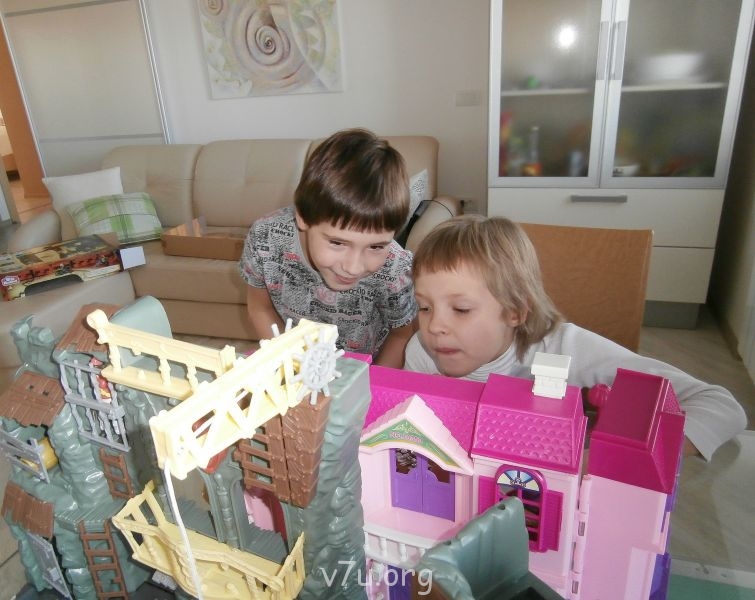 Ездили в супермаркет, дети на автоматах играли, в аэрохоккей, в "Детский мир" зашли, купили им кукольные домики для мальчика и для девочки. Аленку в парикмахерскую "заманил" под предлогом, что мне самому подстричься надо, ну, а ей чего просто так сидеть - тоже айда... Подровняли ее, не айс, конечно, но все-таки... Димас с планшетом, не оброс еще. Дома они играли, кушали... Но вот игры у них... Сначала порядок в домиках наводят, потом гостей приглашают, гости приходят - за стол садятся, разумеется, потом слово за слово, все кончается поножовщиной - уносите трупы, Шекспир отдыхает...
