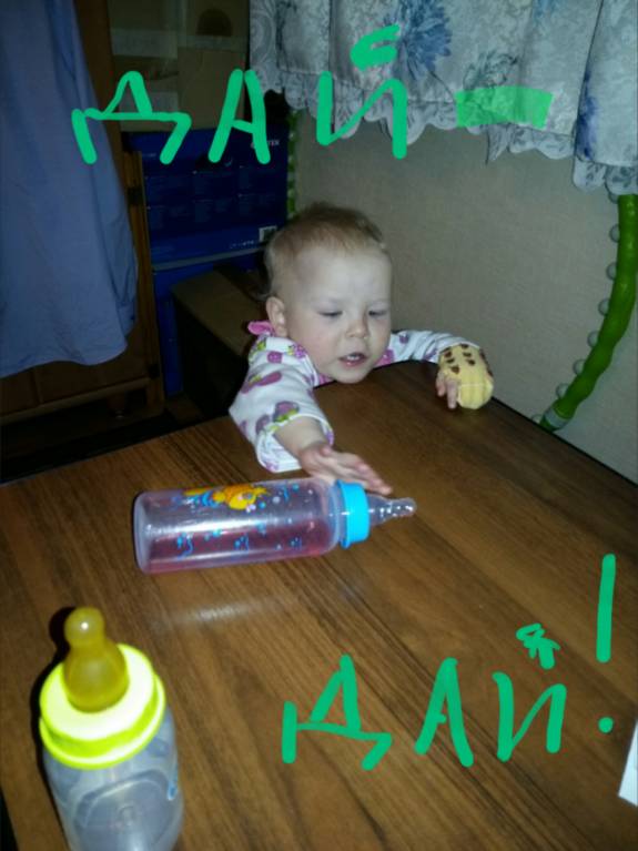 Сегодня Ксю не слазит с рук,счастья полные штаны! Воркует со всеми по очереди ,ща выдала ''ба-ба'' ,''дай'' и принесла соску вместо того чтобы бросить,положила на стол и погладила себя по голове! Ксюша хорошая!