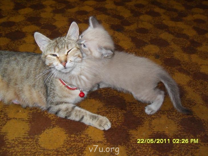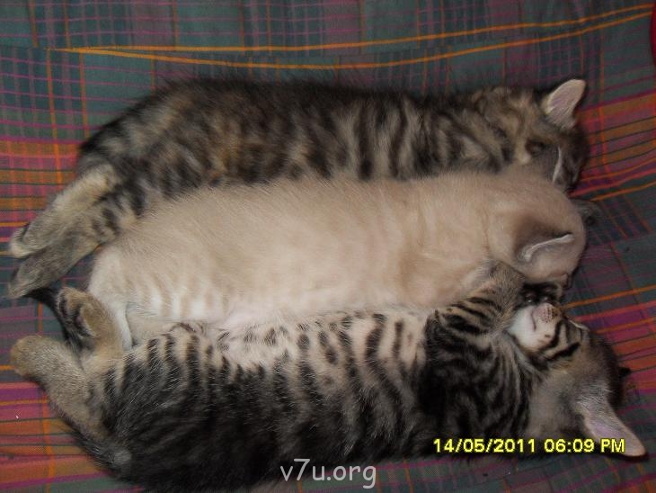 А это счастливое материнство Маруси. Двое уже уехали по новым домам,а третий,любимчик мамы, отпрошен у будущих хозяев до понедельника. Она такая замечательная мама!