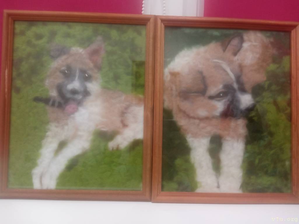 У нас девочки любят живопись шерстью. Вот из последних работ. Наш щенок, по фото делали.