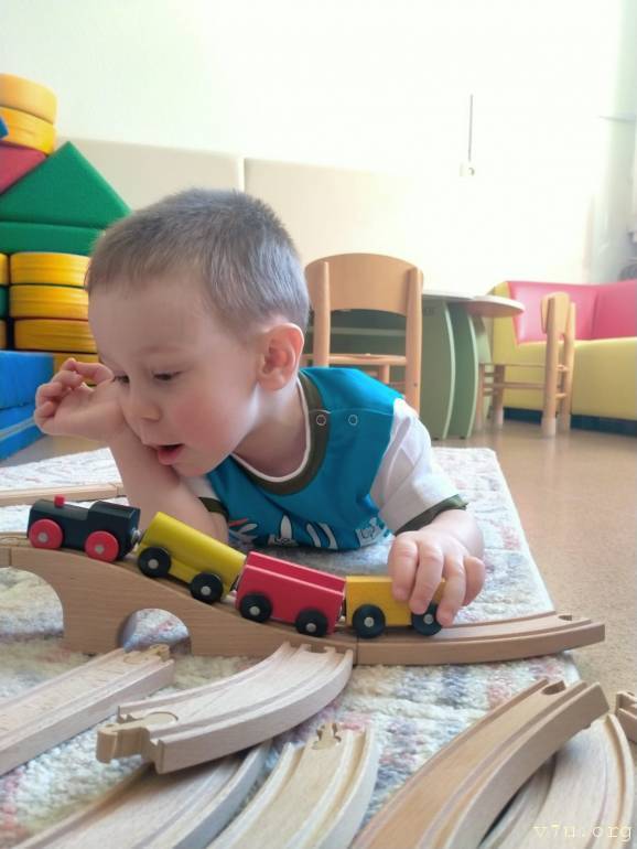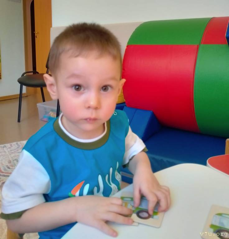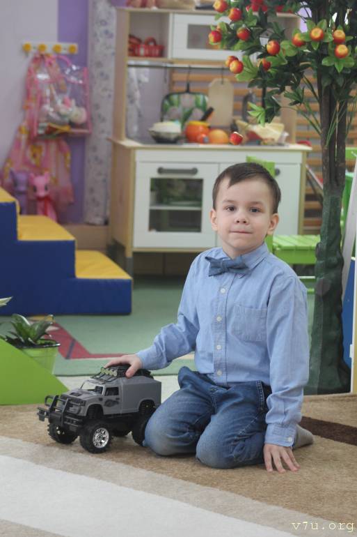Самый младший Захар – здоровый и хорошо развитый ребенок. Он отлично говорит, любит задавать вопросы, знает все цвета, причем не только основные, но даже названия оттенков. Особое увлечение Захара – любые двигательные игрушки. Если в руки мальчику попадает машинка, трактор, экскаватор или поезд, считай, ребенок занят.