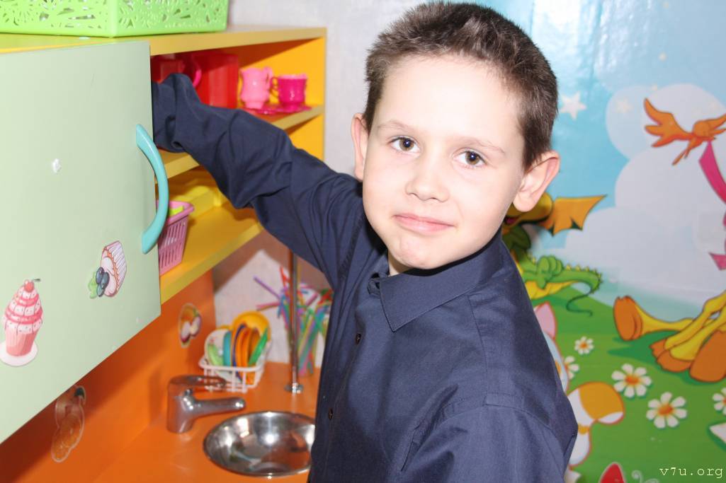 По рассказам сотрудников, при поступлении в детский центр мальчик ничего не умел. Его учили мыть посуду, заправлять кровать и другим домашним делам. Сейчас все эти навыки получены.