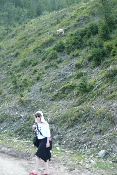 это я уж в Карпатах, иду по горной дороге. на горе - корова