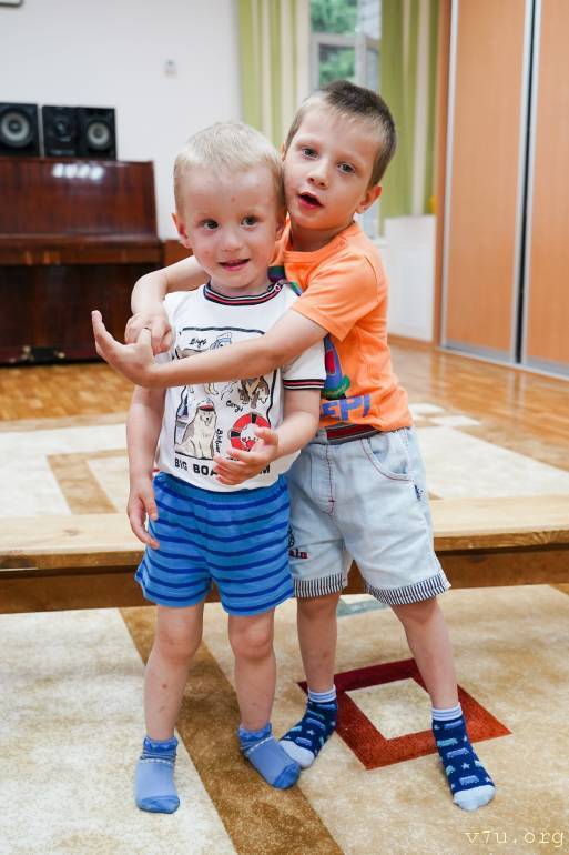Мальчики знают, что у них есть младшая сестра, воспитатели водят их в группу для малышей, встречаются они и во время прогулок. На фотосессии, которая была организована для начала поиска приемной семьи, Тимофей и Степа не могли налюбоваться на платье и туфельки Сони, они целовали сестренку и гладили ее ручки. Особенно радовался Тимоша. Он вообще человек активный, открытый и улыбчивый. Тимофей–маленький исследователь, его привлекает всё, что можно открутить, открыть, потрогать, изучить. Малыш любит играть с машинами, конструктором. Сам уверенно ездит на велосипеде, больших машинах, с удовольствием катает своего старшего брата, к которому очень привязан. После игр мальчик всегда убирает игрушки за собой и помогает своим сверстникам. Степан тоже хороший помощник в группе.