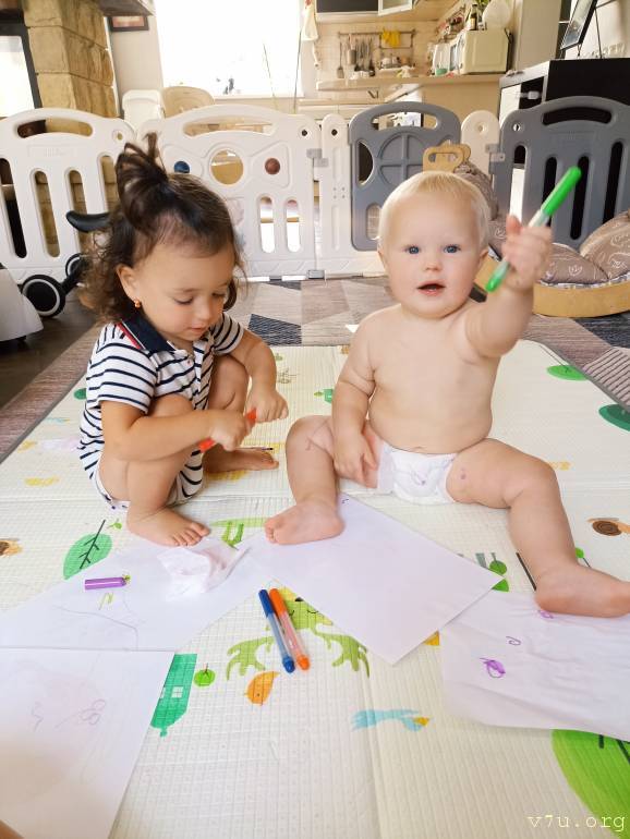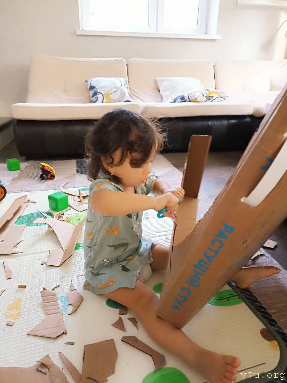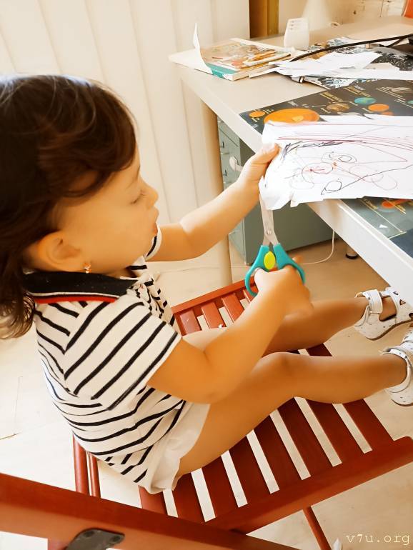 Еноты сопливые сидят дома второй день. Научила Еську резать ножницами - так можно на часик обездвижить девчулю:)