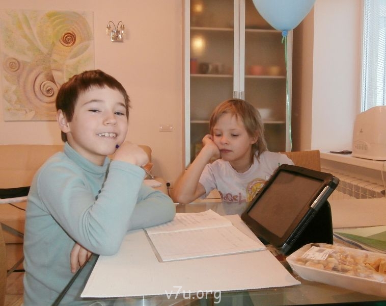 На физкультуре чего-то не заладилось у него, дома показал мне, как у него "не заладилось"... А ему, оказывается, просто трудно в точности движения повторять. Они там это просекли, и постепенно он теперь стал втягиваться в "дружную работу коллектива". (А я, балбес, не просек. Дома мы с ним периодически упражнения на координацию делаем, ему забавно, он все повторяет...) Каждый вечер бежит меня встречать и радостно докладывать об успехах. Успехи есть. С учительницей регулярно созваниваемся. Димка замирает столбиком - чего-то она мне про него расскажет?.. Поведение нормальное, на уроках работает, про драки вообще забыли, а когда он понял, что домашнюю работу можно в школе сделать, чтобы на вечер не оставлять, стал все успевать...