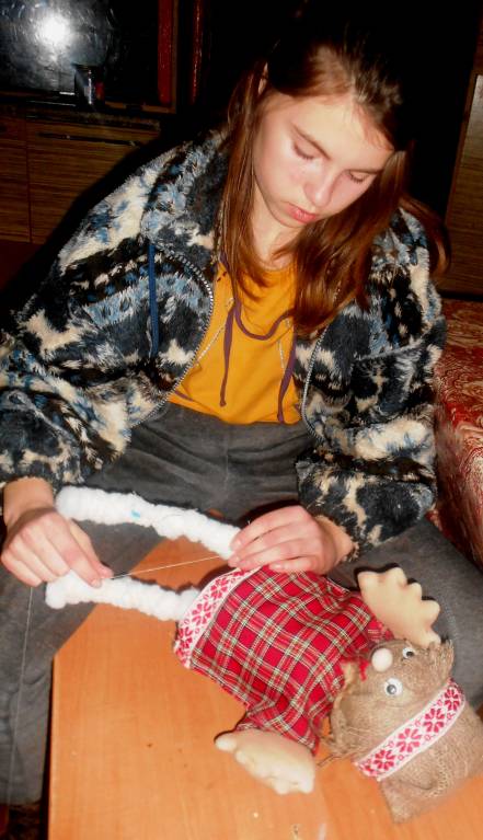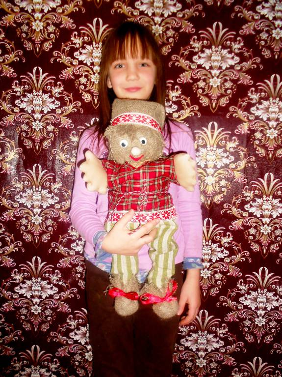 А еще Сонечка всю неделю мастерила Домовенка.Только он у нее получился молоденьким каким то.Наверное будем его в старичка переделывать. А то он у нас совсем несолидный.