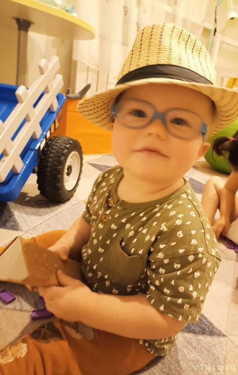 Ая сегодня днем к няне в гости ходил, вернулся довольный в чужой огромной пижаме (намочил свою кофточку), а вечером Еська шляпу нашла в шкафу и Аю наряжала:)