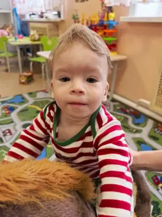 В целом же воспитатели отмечают: Ислам — мальчик перспективный. Он активно ползает, стоит и умеет передвигаться у опоры. Если с ним заниматься, очень велики шансы, что ребенок пойдет. Так же и интеллект. Ислам очень любит игрушки и играет со смыслом, правильно: машинка у него ездит, мячик катается — все как положено.