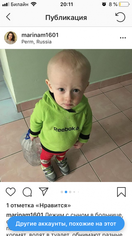 Добрый вечер! Пишу в тему о мальчишке https://www.instagram.com/p/Bxz__HTlCSQ ... p0aiio26mb цитирую все из инстаграмма также можете лично написать девушке что написала туда это сообщение