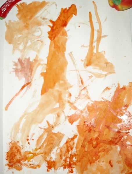 - а вот нарисовала красками картинку - что-то типа салюта ))) - несет мне в подарок, и так смущается, когда хвалю ее за красоту - улыбается и головку к плечику прижимает, но такая улыбка при этом - во весь рот!)))