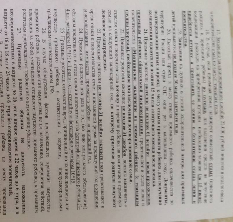 Справка им не понравилась, велели переделать. А мы ездили в Крым, как я переделаю? Пыталась связаться с пансионатом, безуспешно. Мне дали официальный отказ, мотивировали тем, что предоставлен не полный пакет документов. Видимо, средства экономят. В позапрошлом году мы несколько раз переделывали какую-то бумажку. Но там пансионат был другой, они переделывали и на эл. почту мне скидывали до тех пор, пока опеку не устроило. Вообще, они каждый год к чему-нибудь да придерутся. Когда в Белоруссию ездили, велели брать из банка справку о курсе рубля. Из Украины привозили чек из обменника ( уже ученые были) на дату оплаты (мы на месте оплачивали). Каждый раз со скрипом, но проходило. Но не в этот раз. Начальство у нас в опеке поменялось, теперь все по другому.