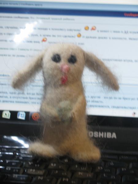 Страшненький по сравнению с работами мастеров, я в Стране мастеров по мастер-классам пыталась делать, но плоховато пока, а может шерсть не та, да и иголочки не совсем те купила - тоненькие, а там сначала нужно толстыми, а потом уже тонкими марафет наводить.