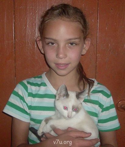 Люська, когда она у нас только появилась, питала огромную, просто патологическую слабость к кошкам. Она настолько их обожала, что забывала про всё на свете, когда видела кошку. А своя или чужая, это её совсем не останавливало. Мимо не могла пройти, прямо, как зомби вытянет руки вперёд -"Коошка, коошка"...и идет напролом, прямо через грядки или через дорогу, не замечая машин. Я её поэтому и за калитку играть с соседскими детьми боялась выпускать. Не дай бог кошка... Один раз выпустила, но наказала через дорогу не ходить, рядом с калиткой играть. Через некоторое время выглядываю в окно. Дети весело и дружно бегают и играют, а Люся моя сидит , нахохлившись, спиной ко мне на лежащих автомобильных колёсах, вся как-то сжалась... Обидели!!! Я к ней. "Люся, что случилось?!"...."Коошка"... А у неё на коленях кошка соседская лежит! Никто её не обидел, просто кошка мимо шла, какая уж тут игра?!... А наших кошек до того затерроризировала, достала своей любовью, что они от неё уже не знали, куда щемиться! Убегали, сломя голову. Но один раз старый кот не успел, видимо, удрать ,и она его "словила". Играла в саду, играла, потом понадобилось срочно ей домой сходить. А отпустить-то кота сил никаких нет! Потом же не поймать будет! Взяла и закрыла его в тумбочке старого умывальника, который стоял в саду. Ушла в дом, да и благополучно забыла про бедолагу. Уже вечером, когда стемнело, Лиля вышла на крыльцо и услышала мяуканье . Нашла несчастного котяру, притащила домой. А у него от переживаний и сидения в тёмной тесноте какой-то припадок начался, "крыша поехала"! Около двух часов кот наш отходил, еле очухался, но после этого у него появилась натуральная клаустрофобия, а Люся так напугалась, так переживала за него, что с тех пор этот ветеран находился у неё на привилегированном положении. Не трогала она его, совсем не подходила... А после просмотра фильма "Женщина -кошка", Люся около года говорила -"Я женщина-коошка, женщина-коошка"... Даже ходить научилась такой бесшумной, кошачьей походочкой...натуральная кошка!...
