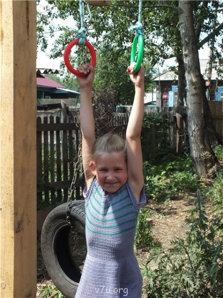 Люся очень сложная была. Подранок... У них в дд не разрешали жаловаться и плакать, когда больно, страшно. За это наказывали. Один раз она умывалась, стоя на маленьком стульчике, и со всего маху грохнулась на пол прямо попой. Я услышала грохот, залетаю на кухню, а она аж посинела вся от боли и хохочет дико! Я напугалась, схватила её, трясу... Еле успокоила. "Больно?" "Да!" "А что смеёшься-то? Плакать надо и к маме бежать жалеться!"...Научила... А ей понравилось. По нескольку раз в день "жалеться" подбегала. Работаю в огороде, смотрю -идёт. Довольная -ля,ля,ля... Подошла поближе, мордочку жалобную сквасила -"Я удааарилась"... Пожалела, подула, вавочку чмокнула - поскакала довольная... Или бежит через весь участок-"Мама, я чихнуула!" "Будь здорова, доченька!" "А я ДВАА раза чихнула!" "Будь здорова!"
