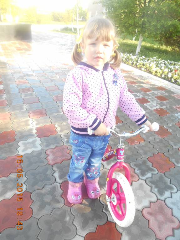 А у нас новое достижение. Научилась гонять на беговеле. Очень здорово получается. А еще год назад по улице ходила только за руку. Пока до сада дойдем 3 раза упадет. И по лестнице совсем ходить не получалось. Вот фоточка. Спасибо добрым мамам , подсказали про это чудо техники.