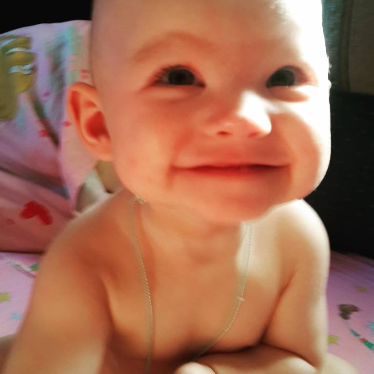 Слога говорит, но они ни к чему не относятся, просто лепет. На свое имя откликаться начала только месяц назад.