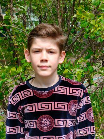 Характер: Серьезный, молчаливый, спокойный. С хорошо знакомыми людьми с удовольствием идет на контакт, поддерживает беседу. Увлекается футболом- посещает тренировки, участвует в соревнованиях и занимает призовые места. Учеба в школе дается легко, обладает математическими способностями, занимает призовые места в олимпиадах по точным наукам.